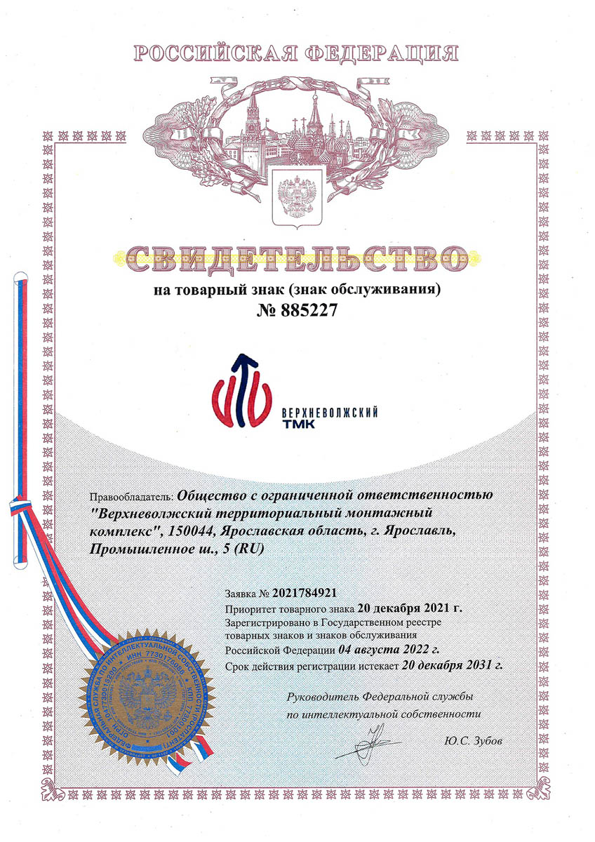 В 2021 году ООО «Верхневолжский ТМК» получило свидетельство на товарный знак. Это важный шаг в развитии компании, подтверждающий ее стремление к защите интеллектуальной собственности и укреплению позиций на рынке. Регистрация товарного знака позволит компании выделить свою продукцию и услуги среди конкурентов, повысить узнаваемость бренда и защитить его от недобросовестного использования. Получение свидетельства на товарный знак – это показатель стабильности и надежности ООО «Верхневолжский ТМК» как партнера и поставщика качественных товаров и услуг.